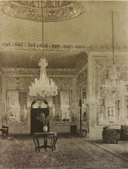 Caption: The Mirror Hall of the Sahebqaraniyeh Palace, probably in 1948.
