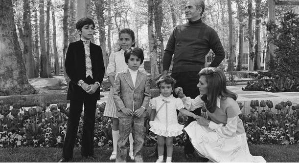 Caption: Mohammad Reza Shah, Farah, and their children at Niavaran Palace.