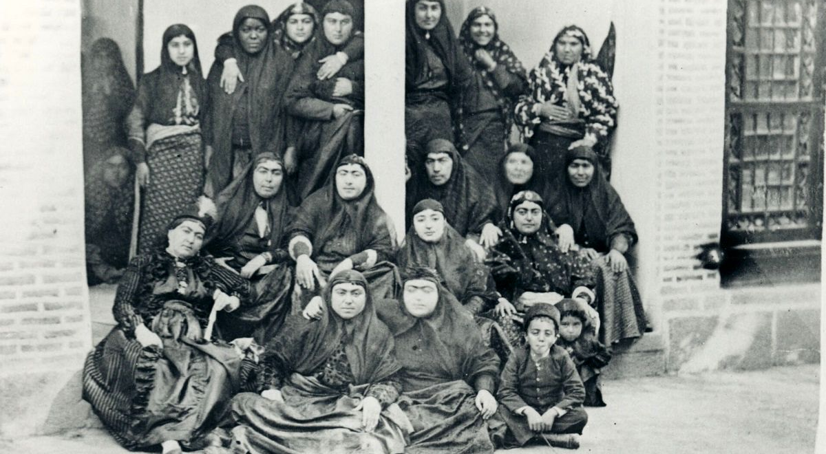 Caption: A photograph of women of the harem taken inside the andaruni (inner quarters)