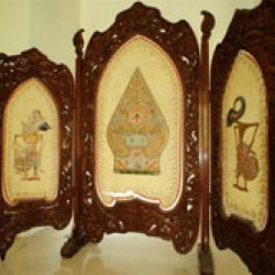 An important decorative artwork preserved at the Ahmad Shahi Pavilion within the Niavaran Cultural-Historical Complex is an Indonesian screen (paravan), presented to the Pahlavi Court during the presidency of Suharto (1966–1999).