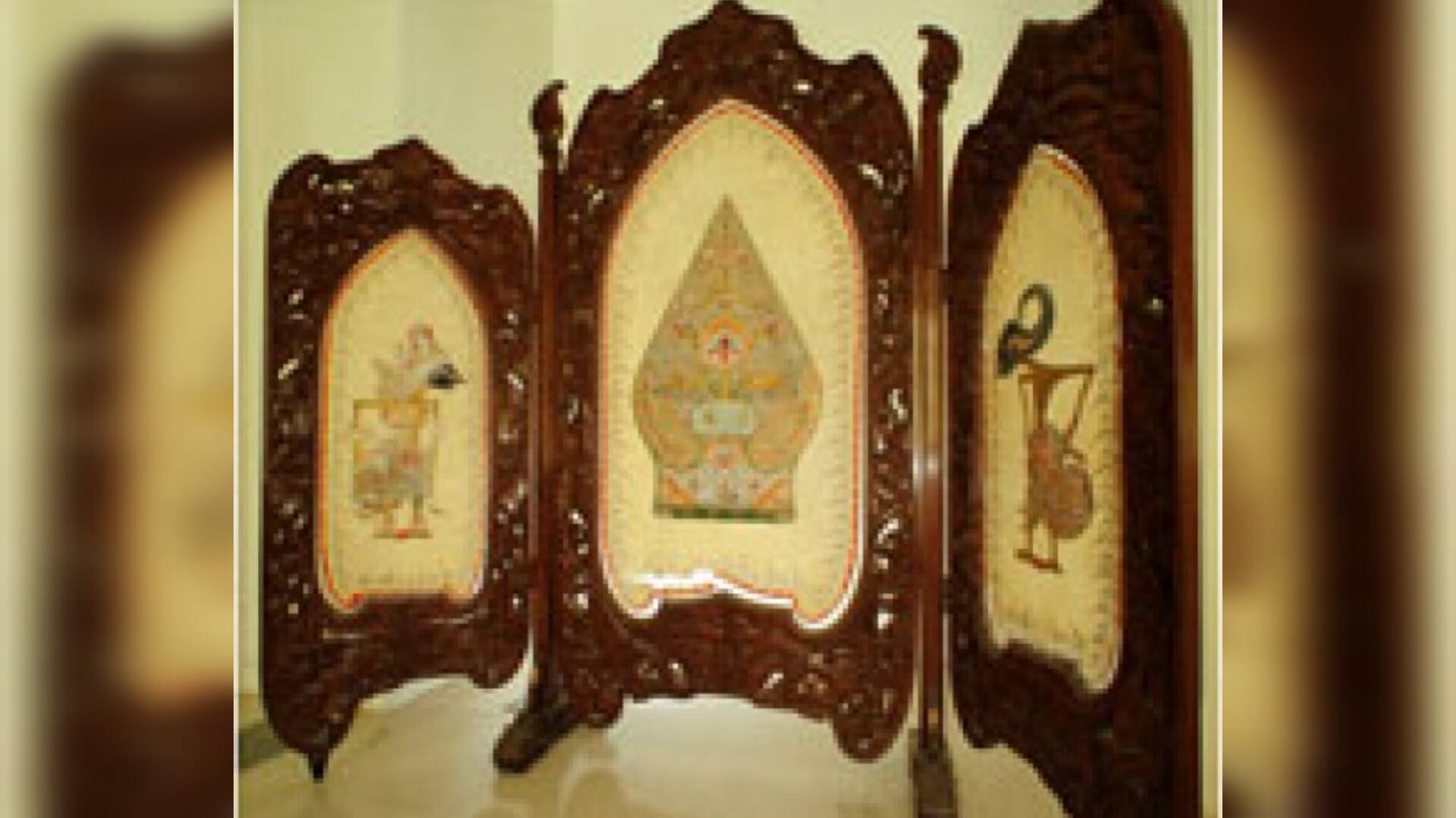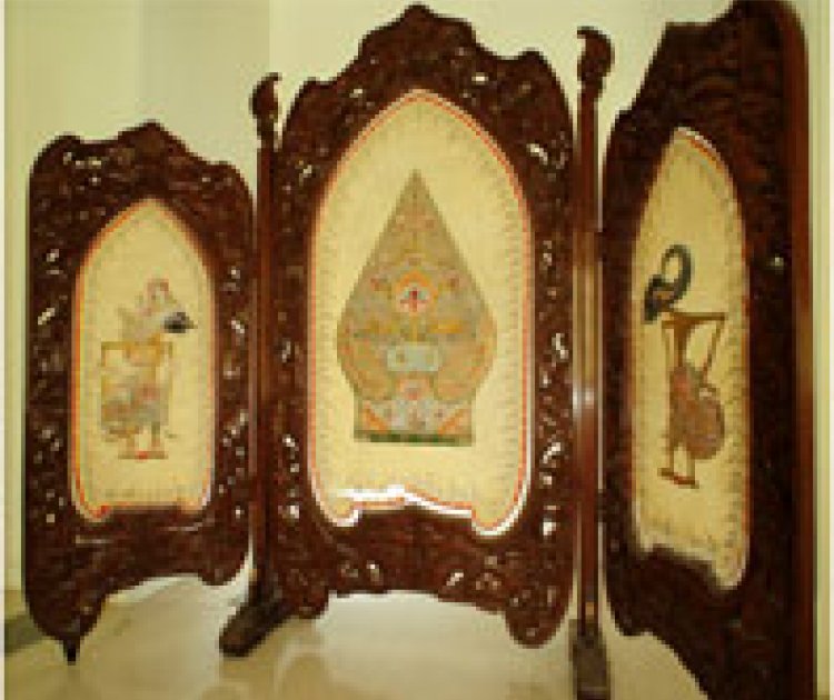 The screen was most likely produced in Java, where the creation of such works is widespread, particularly in the islands of Java and Bali. It is constructed from mahogany or pine wood, and its intricate motifs are executed on treated cowhide, reflecting traditional Indonesian craftsmanship.